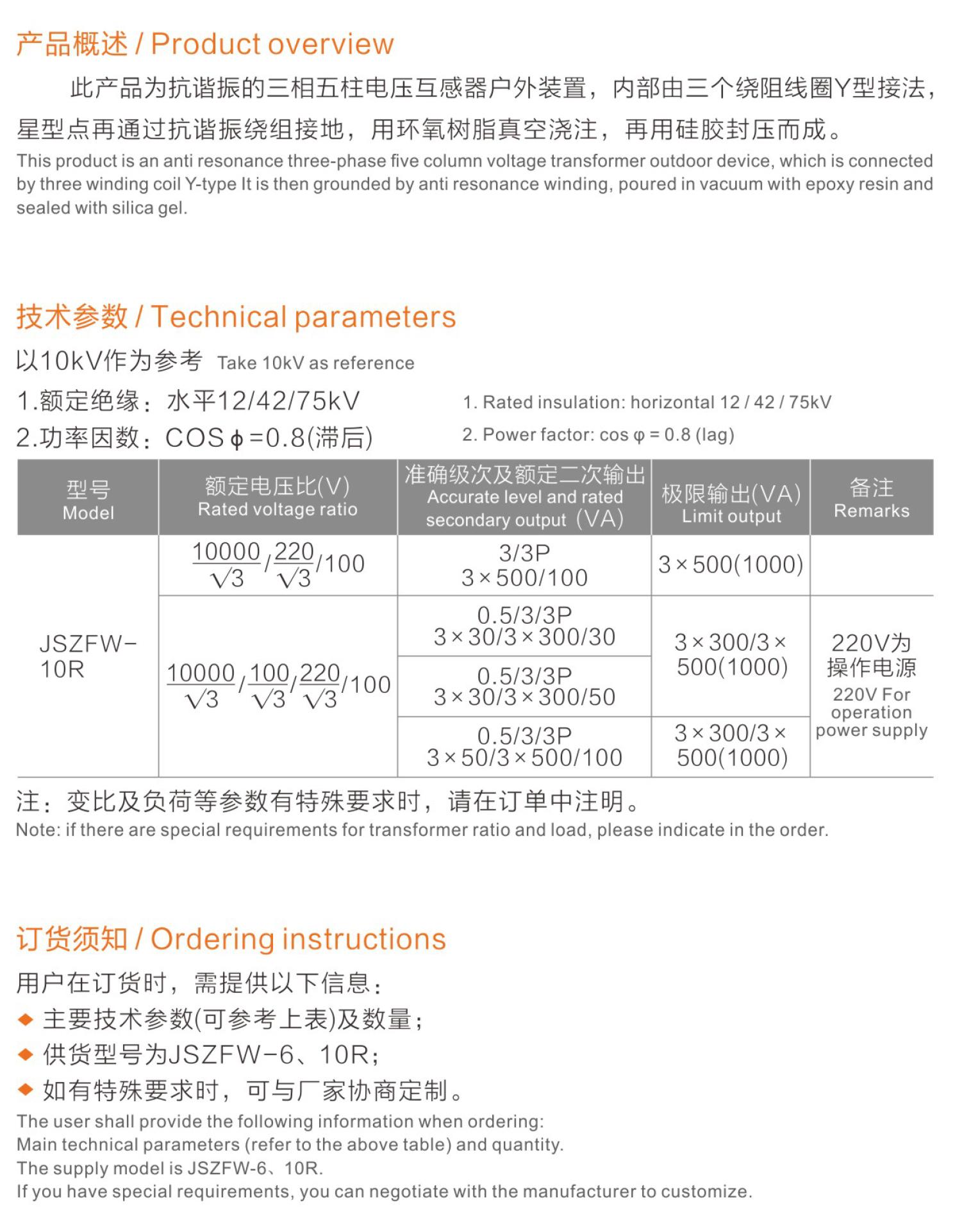 名稱:戶外電壓互感器