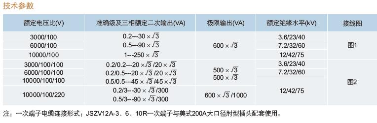 二、JSZV12A-6R,JSZV12A-3R,JSZV12A-10R戶外電壓互感器技術參數(shù):