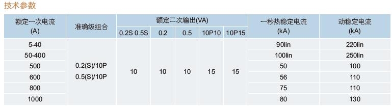 3 額定一次電流、準(zhǔn)確級(jí)組合、額定輸出及額定動(dòng)、熱穩(wěn)定電流見(jiàn)表: