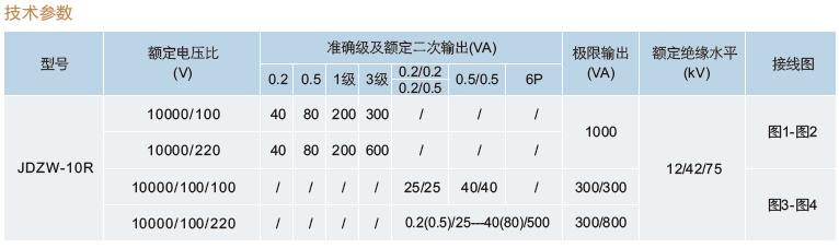 二、JDZW-10R電壓互感器技術參數