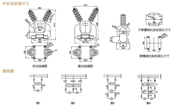 三、JDZW-10R電壓互感器產品外形及安裝尺寸